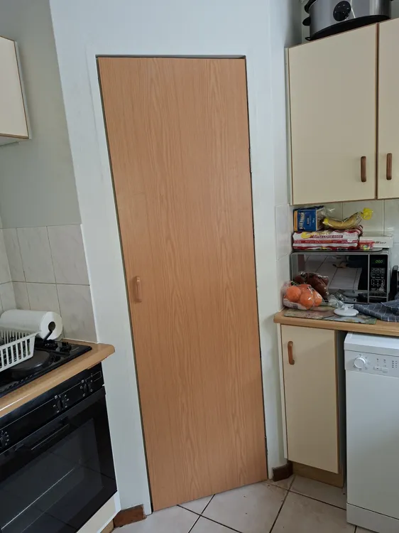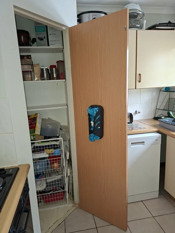 He built a new door for the pantry. He also installed an extra rack in the pantry. His service was excellent. Job well done.
