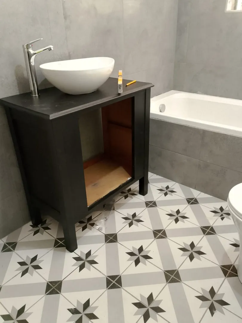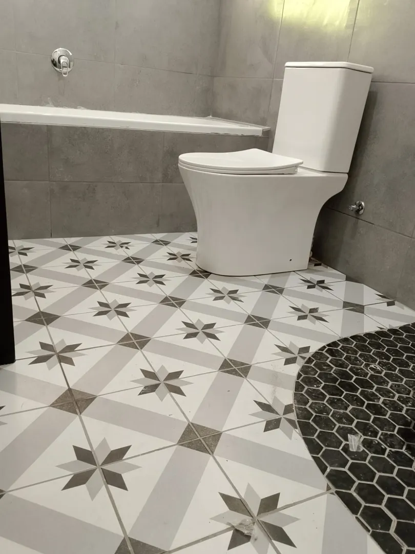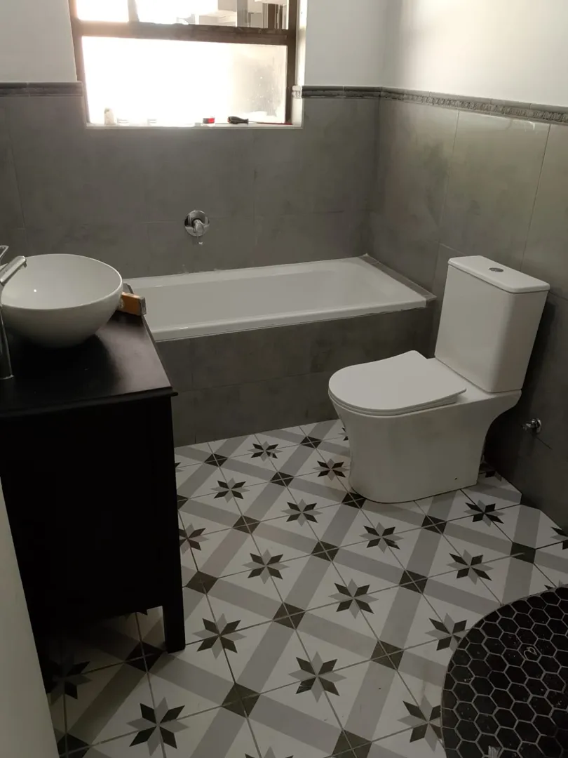 BATHROOM: Tiling: floor and wall Replace toilet, bath, shower and basin. Size: 1.9 m X 2.75 m KITCHEN: Tiling: floor and wall New cabins Size: 2.75 m X 3.25 m