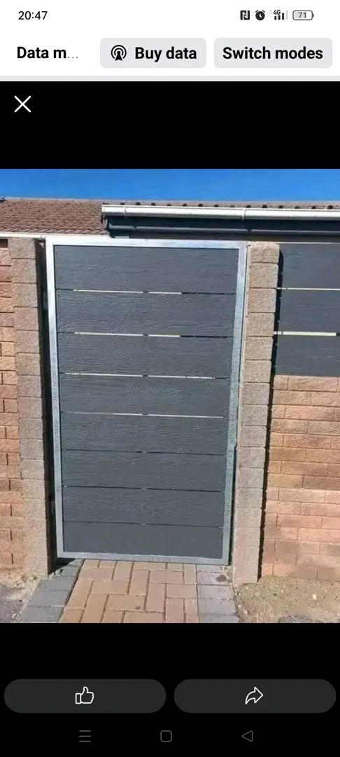 About: *pre- galvanized steel frames for sliding gates (cladded with nutec?) * nutec cladding on existing gates and fence *nutec panels on vibracete walls * repairing gates, retracking, changing of wheels and rollers.