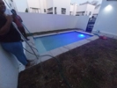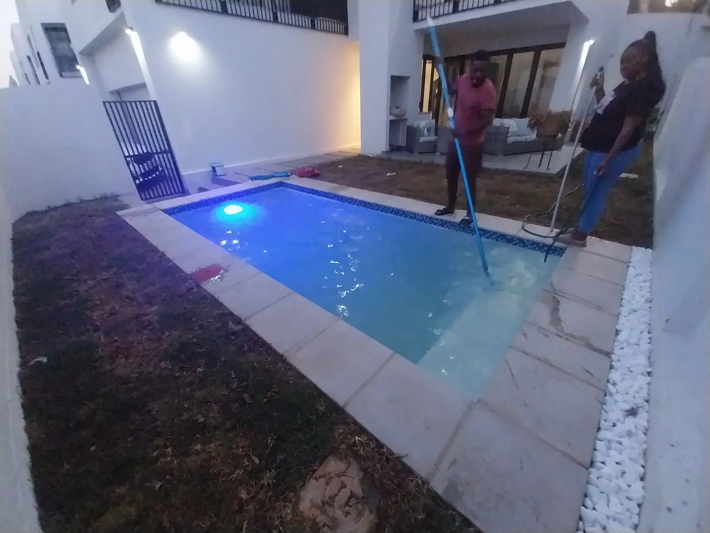 I have a portable lt bestway pro max pool with a small filter that can't backwash etc. Pool went green, I shocked it to blue with hth and soda ash but now I can't get rid of the stuff at the bottom from all those chemicals. Needs backwashing and bit more attention to restore back to sparkling blue. May become more regular client if you can do this nicely