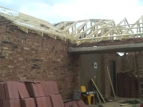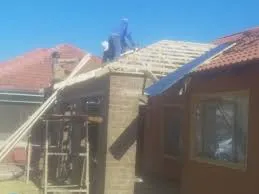 11m x 7m. 3 car garage.. The walls are built already to roof height. There are 3 x single garage door openings already.. I would prefer the roof to have steel trusses to wood trusses. I do not want a ceiling .however I would Ike Sisalation covering underneath the roof 1st choice covering is Chromadek 0.5 mm IBR Second choice is Harvey tiles.
