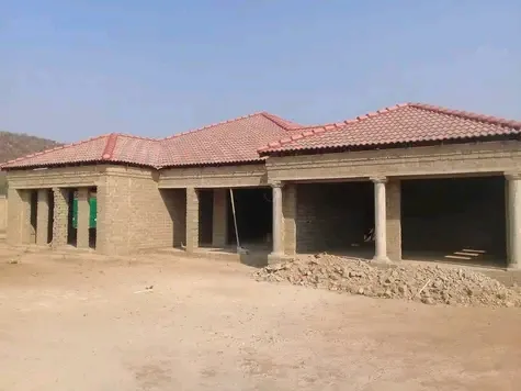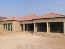 Three room house, two spacious bedrooms on both ends of the house in the middle will be open plan kitchen and sitting room, the bedroom with both have en-suit bathrooms with shower and baths. the structure will be mainly plastered wall and some face brick wall. The layout of the house will be like three rooms each with three gable roofs.