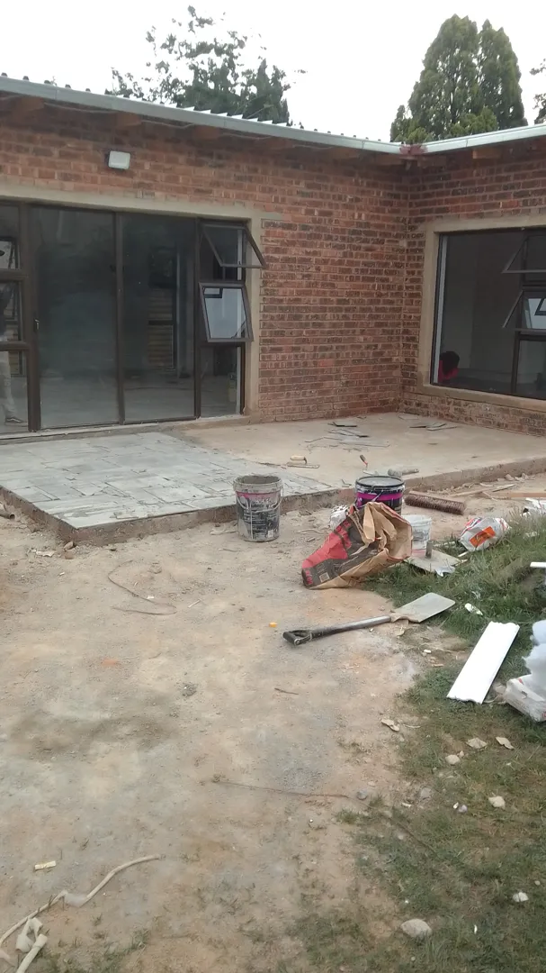 Painting of the walls, put in units, flooring, lighting, braai stand area, fire place, sound system, change the door and window.