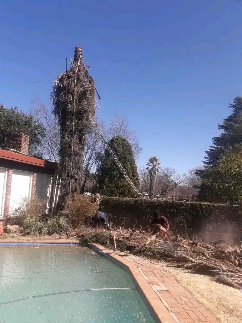 Good afternoon. Could you please provide me with a quote to remove this tree? (see pictures) We can leave 2 meters of the stump. It is close to our roof, the boundary wall and will take some special skills to not damage the surrounds. Its location is at the side of the house not far from the front-side. From the tree, you go through a little gate to the front of the house where there is parking for your truck to load. It is a bit difficult to show the size of the tree since it towers over the roof. Thank you kindly.