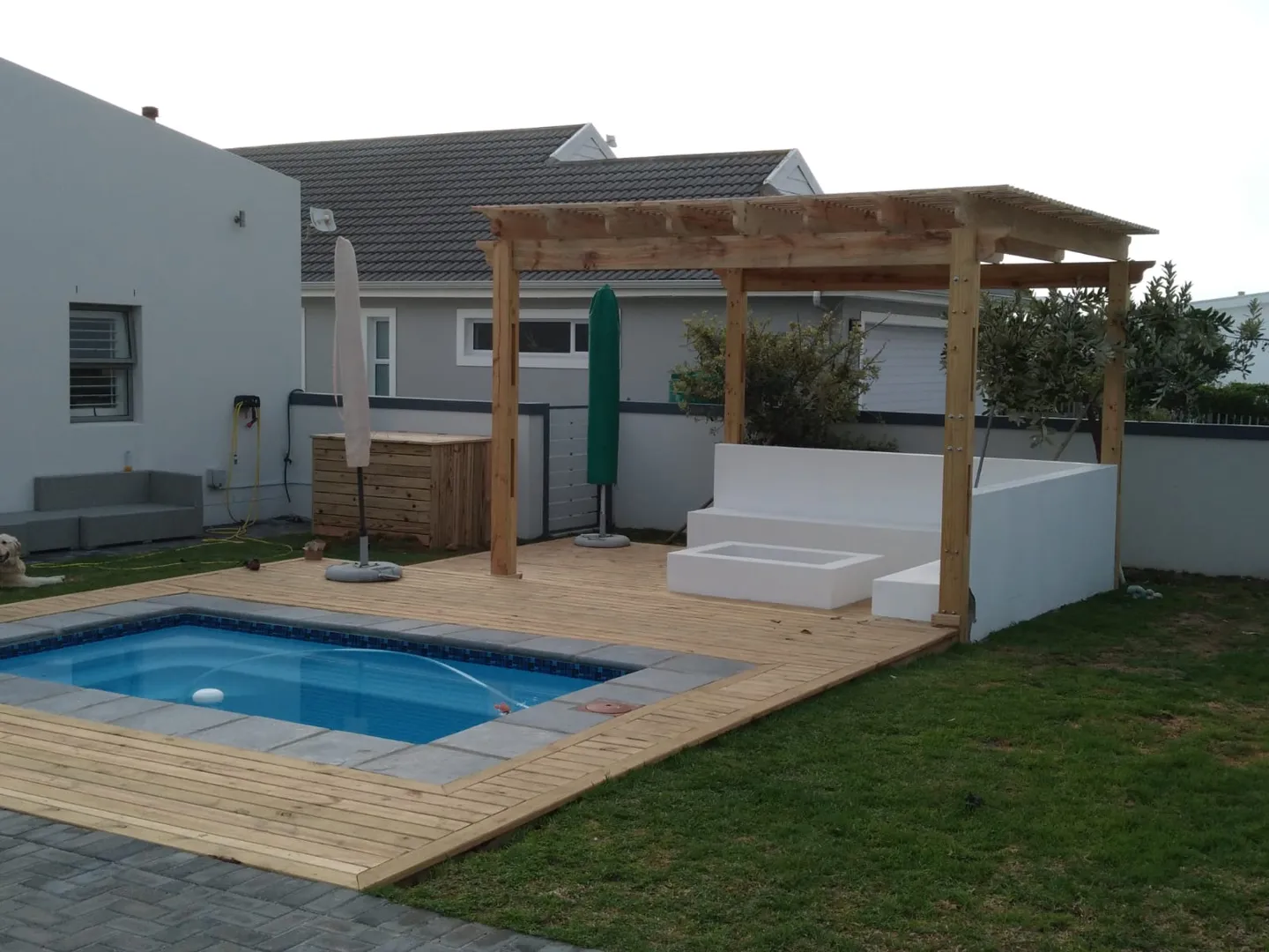 Good Day The house is +/- sqm so the whole house needs to be painted outside the house will be two different colours outside Pallasite needs also to be painted and the double door wooden garage needs also to painted The roof doesn't need to be painted And I will supply the paint for everything outside the house