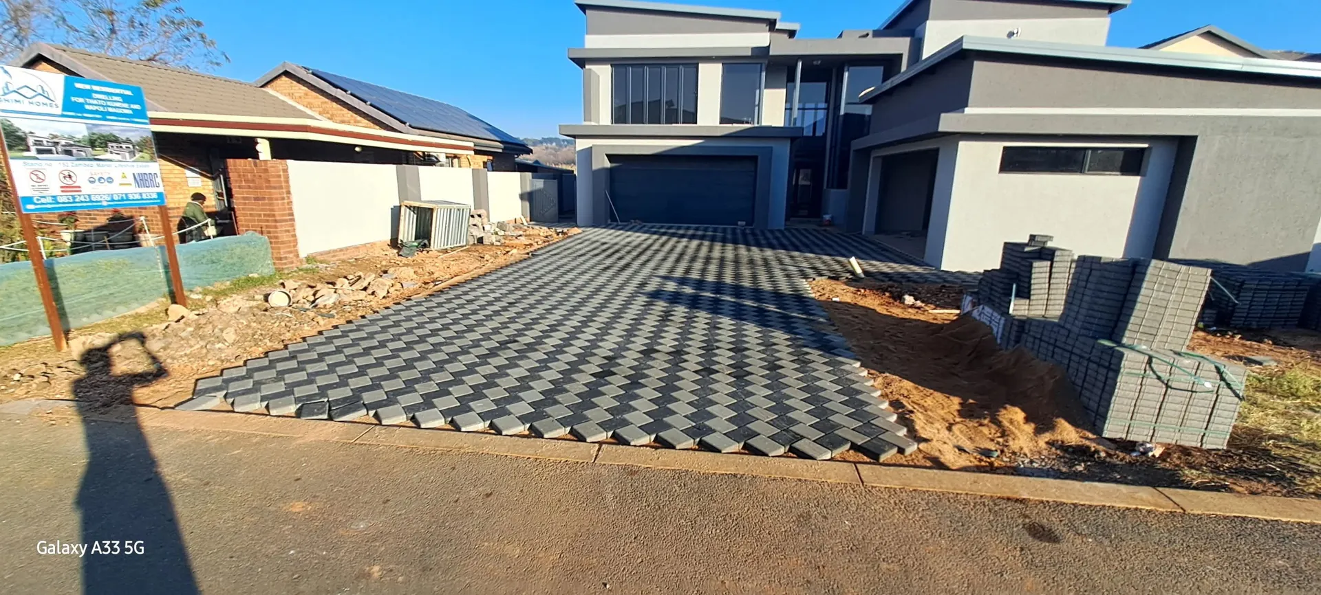 New home paving around house and garage ramp