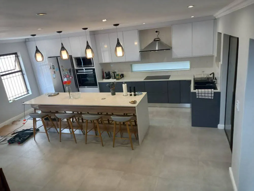 A house with -3 bedrooms, including 1 master bedroom with a bathroom and a closet must be spacious. -A open plan kitchen and dining area - A normal TV room -1 bathroom with a shower and a bathtub excluding the main bathroom -A built-in braai area and an outdoor patio with easy glass door access to the exterior Roughly R-R