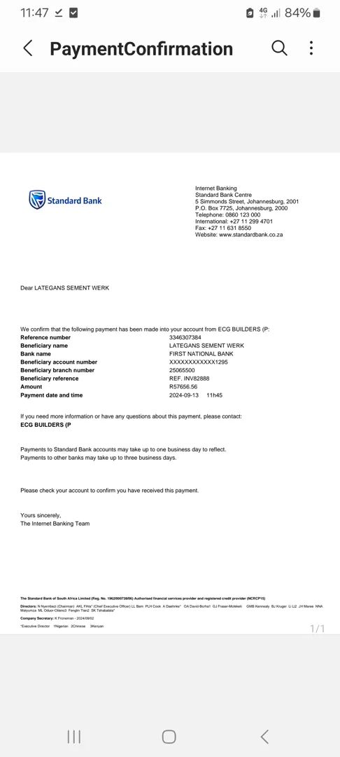 About: Ecg builders pty ltd,spesialize in,new buildings,renovation work Ecg builders is NHBRC Registed&CIDB Registered Ecg builders finished all projects on time, Specialize in. 1.brickwork&plaster 2.all tipe of paint work 3.all tipe of paving work 4.all tipe of ceiling work 5.all tipe of fencing work 6.all tipe of roofstructure and roof coverings 7.steel beam&colums installation 8.all tipe of concrete decks 9.New &exist electrical installation 10. We employed qualified workmanship.
