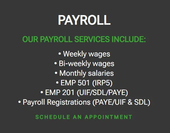 I have a very simple and stable tax situation. I earn a salary, have a medical aid, have a few investments/RAs, earn a tiny bit of foreign interest, and have an Easy Equities account. I have never been audited, except this year, when I claimed for solar panels. I just don't like doing my own tax. I guess that it would take a competent person less than an hour to do my tax returns. I would like to get a quotation for a reputable company or person to do my tax returns.