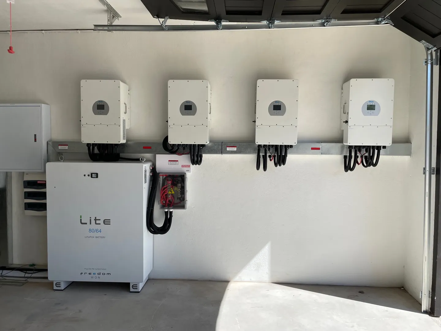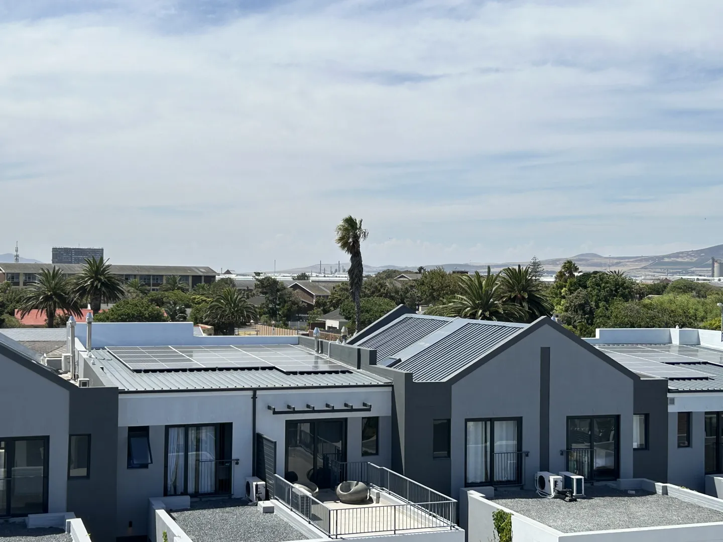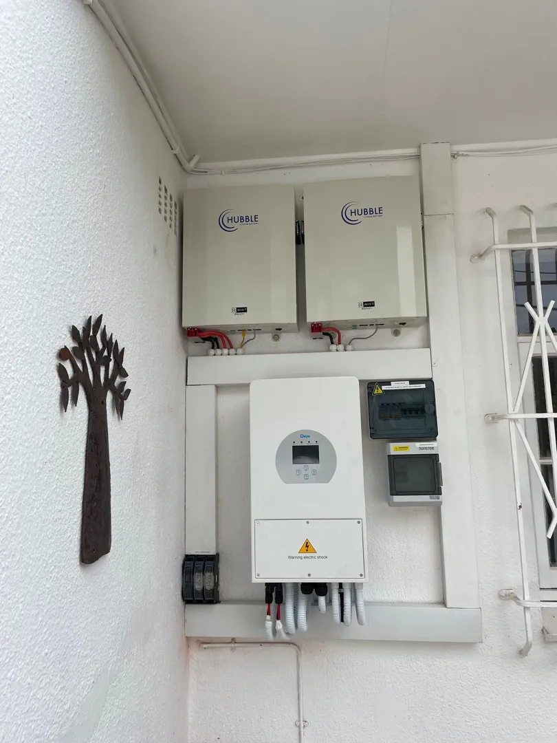 I have imported a 10kw 96 volt hybrid inverter with 12 solar panels, this is to match my 2x 48 lithium battery packs. the inverter has been set to the parameter of my battery/s. this will be installed in my garage as I am near completion on building my own electric car. hence 96 volt batteries. a cable will have to be placed approx 10m to the main board on the right of the house. please view the attachment of the house. possibly a quote could be made on what you view in the picture - the panels are by and the roof is tiled with vertical rafters spaced out +- a meter apart (ie ^ meter ^ meter ^ meter ^ and so on) The main house is north facing but since its hybrid inverter im not to phased about the panels being dead on north and there is no space on the main house
