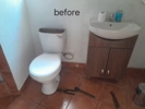 Replacements 1. Supply and install front flush cistern mechanism 2. Supply and install 15mm OXFI compression straight female coupler 3. Supply and install 15x15mm angle regulating valve 4. Supply and install FxF 15x braided connector 5. Supply and install new toilet seat cover 6. Supply and install bath mixer 7. Supply and install tiles for back splash (5m2) 8. Supply and install basin mixer taps 9. Cut wall to locate leak in the wall, replace 3,2m water Supply pipe and replace wall tiles (3m2) 10. Supply and install hand wash basin