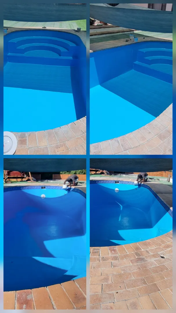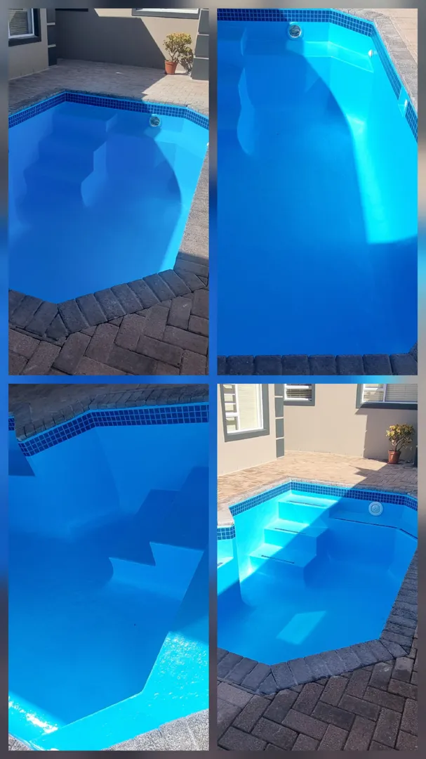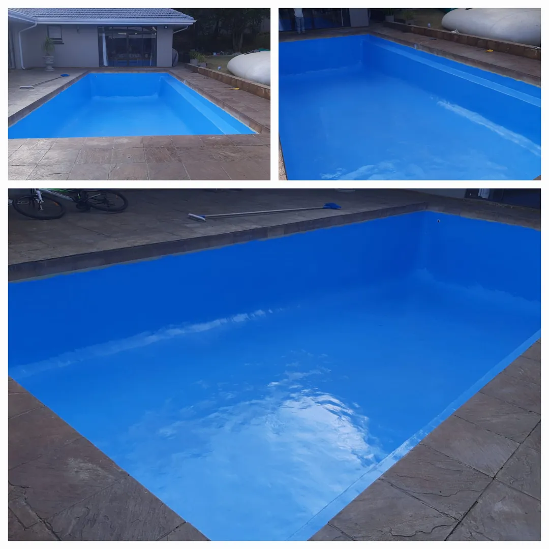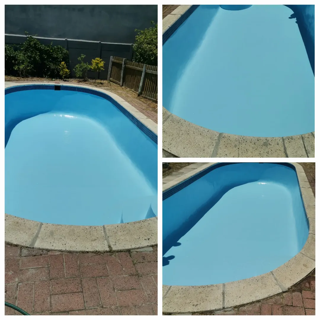 Our pool is concrete, old school size pool 12mX6m, max depth 3.2m & shallow 1.5m deep. - Draining of pool ( Liters) - Replacing of sand - Installing of a new leaf suction catcher - 9x Cracks Filled & Sealed - Scrubbing the pool to remove grime, dirt and mold - Underwater epoxy for tiles on steps - Spirits of Salt to remove stains and dirt marks