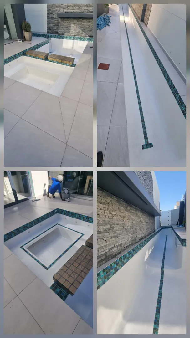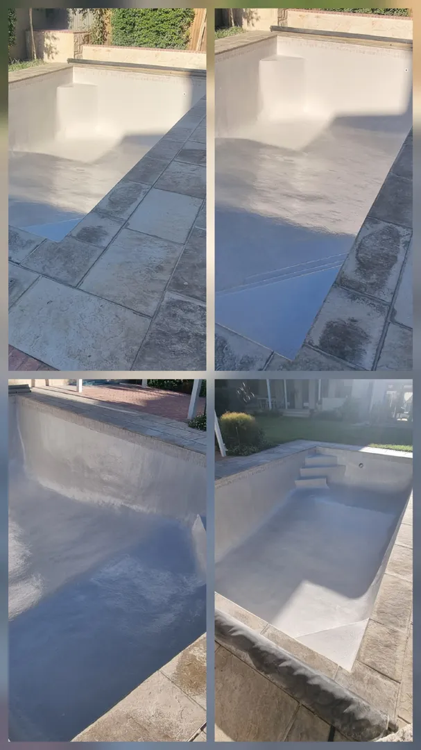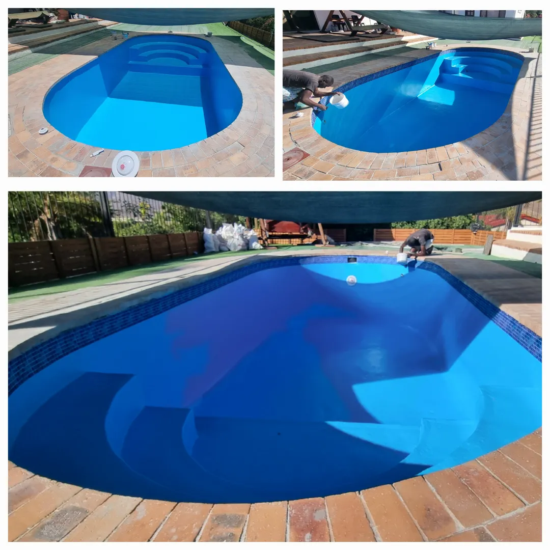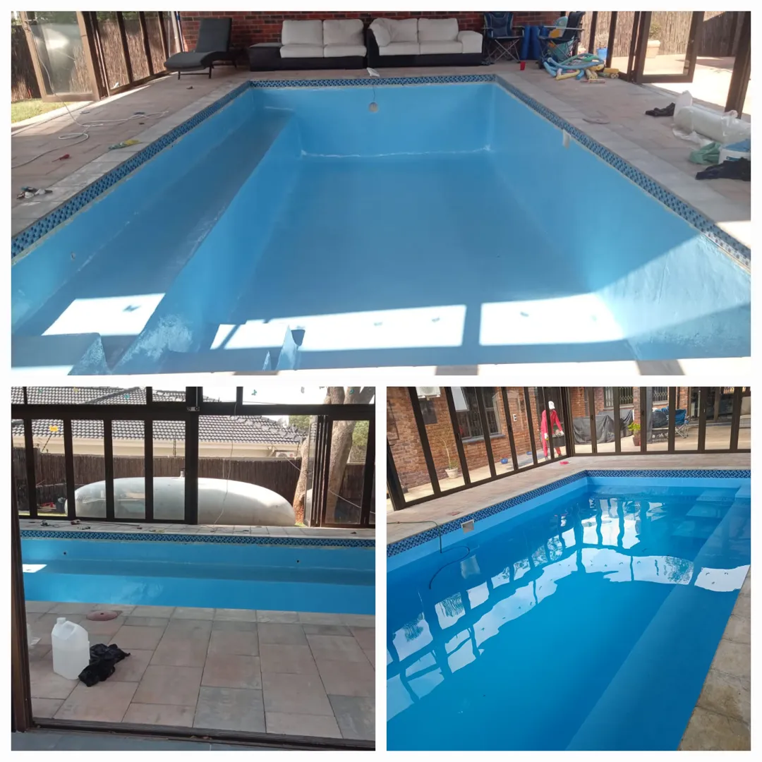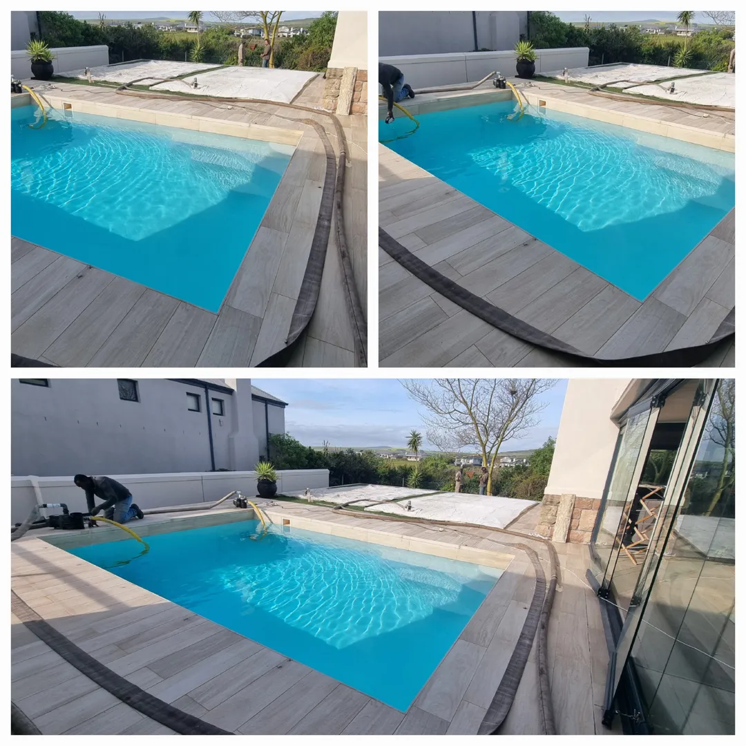 Our pool is concrete, old school size pool 12mX6m, max depth 3.2m & shallow 1.5m deep. - Draining of pool ( Liters) - Replacing of sand - Installing of a new leaf suction catcher - 9x Cracks Filled & Sealed - Scrubbing the pool to remove grime, dirt and mold - Underwater epoxy for tiles on steps - Spirits of Salt to remove stains and dirt marks
