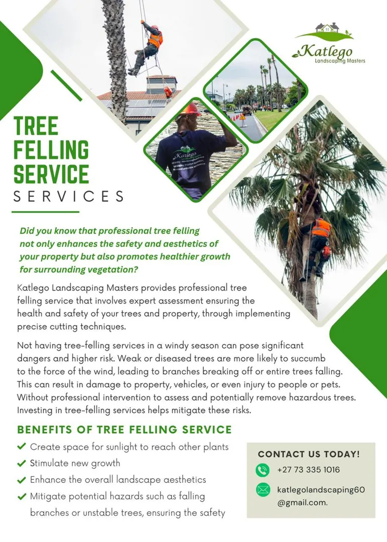 About: Katlego Landscaping Masters is a BBBEE level 1 business based in Cape Town and works around the entire Western Cape & beyond. Our core business services include the design of landscaping & Irrigation, Installation, Maintenance, Tree-Felling/Pruning, Artificial lawn installation & General Cleaning. KLM was registered in 2008 and owned by an experienced horticulturist Simon Kachuma. Our clients: Waterfront, Residentials, One & only hotel, Century City, Health department, Barons VW and more.