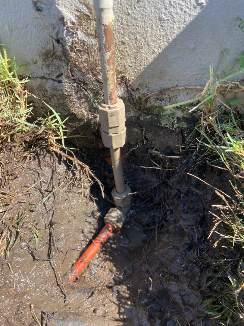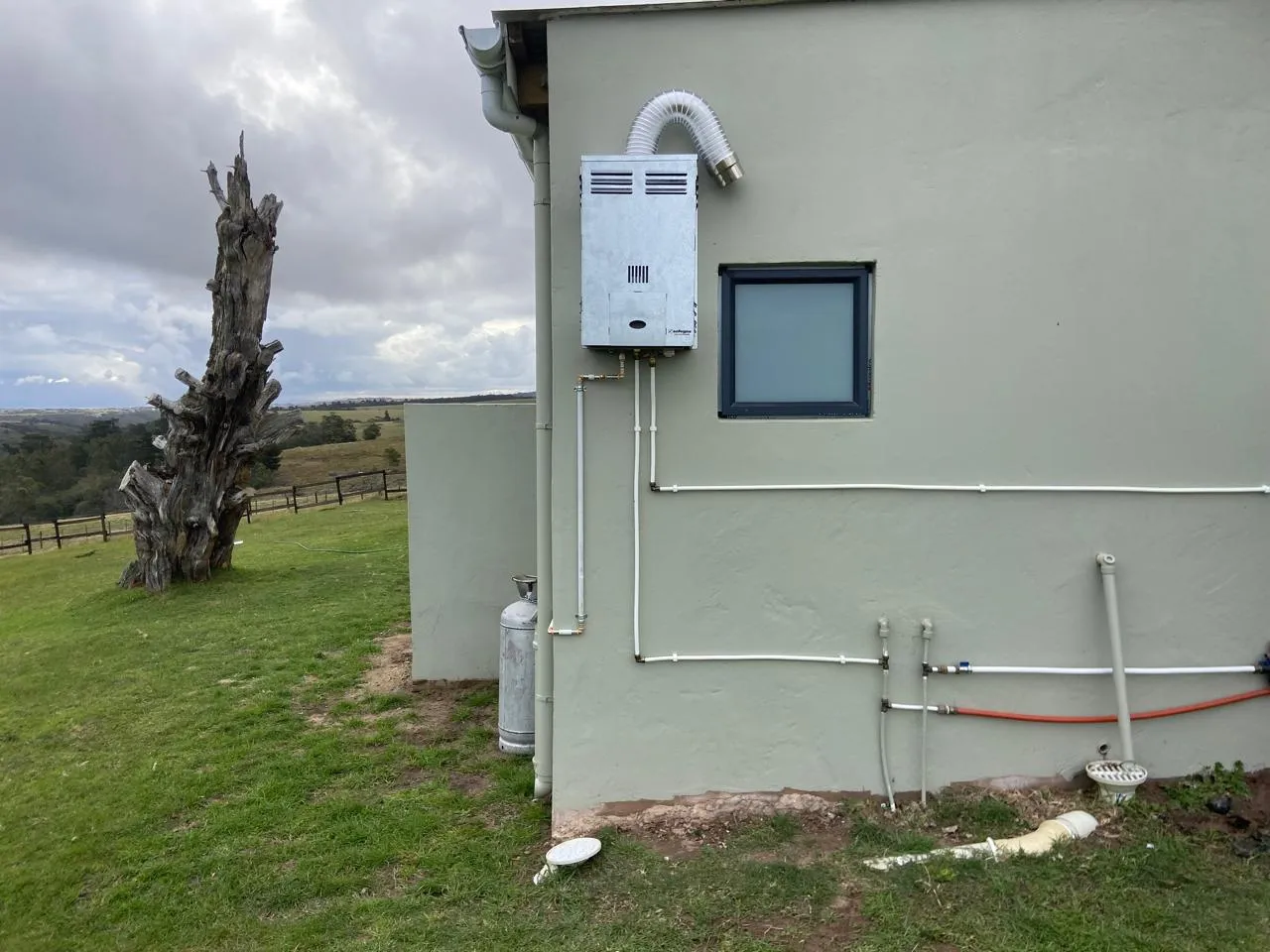 Main water supply stop tap and pipe feeding geyser regulator with water replacement.
