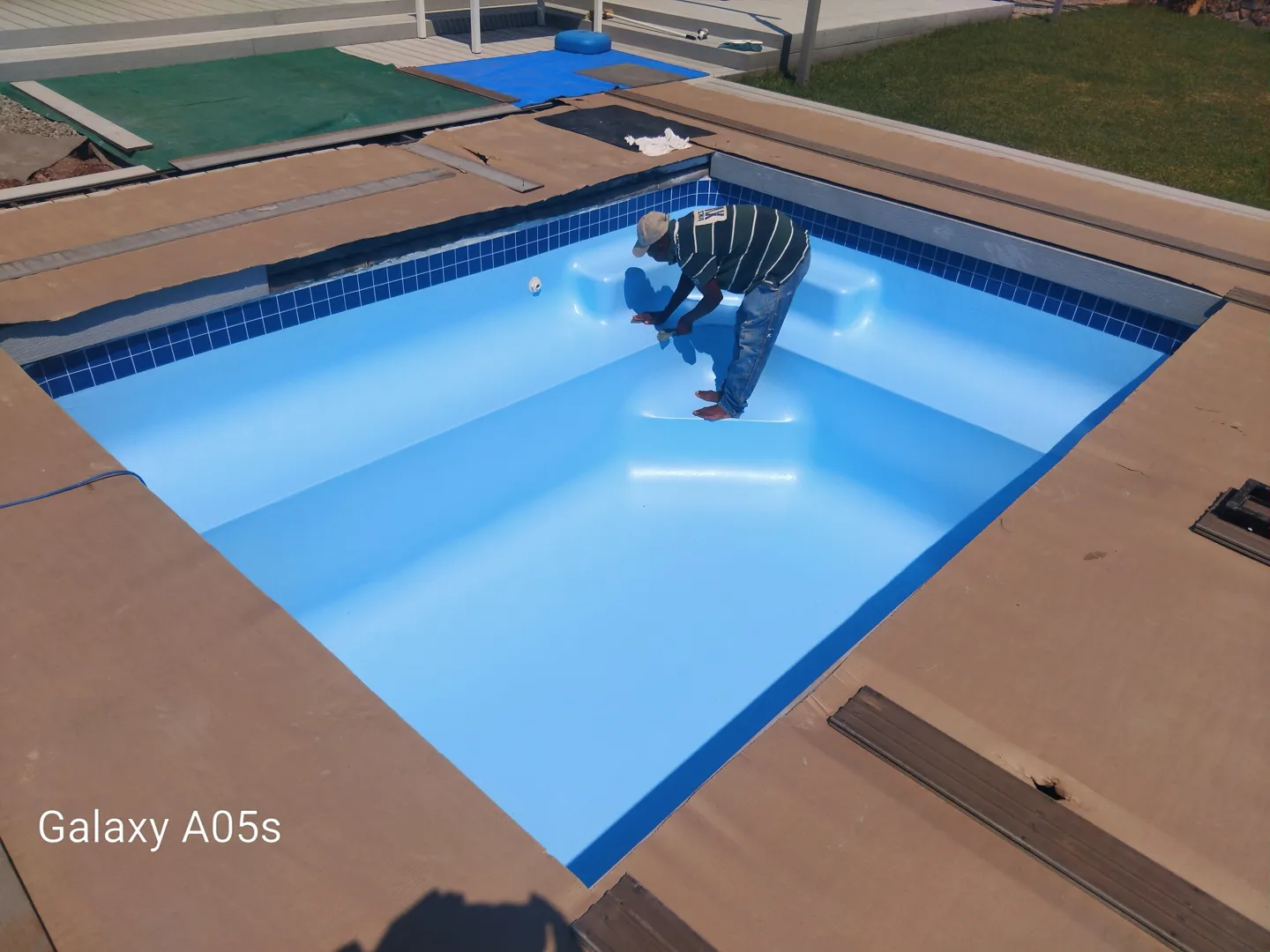 STRIP EXISTING FIBREGLASS LINING Prepare surface to accept new liner Repair any cracks or holes if any Cut mechanical groove under copings, around light, weir and aimflo Laminate pool interior using gr chopped strand matt, Isopthelic resin and NPG top coat (white or sky-blue) New Fibre mosaics along pool and step edge Supply and install new blue LED light pool size 5x3