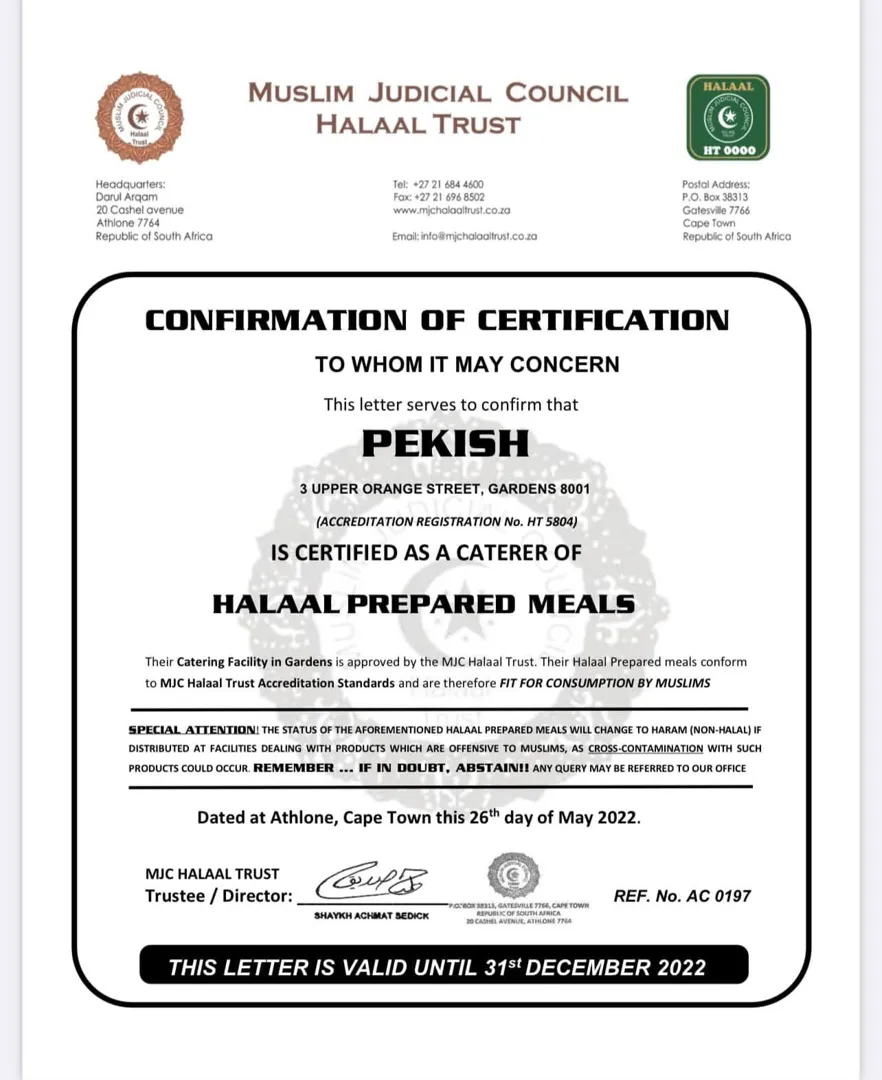About: Pekish is an event and food catering business based in Cape Town’s city centre, specialising in fresh, high-quality meals for a wide range of occasions. The business caters for corporate functions, private events, meetings, and special occasions, offering savoury and sweet platters, spit braai catering, and buffet-style or plated service upon request. Pekish is known for flavourful food, reliable service, and flexible delivery across the Cape Town CBD and surrounding areas.