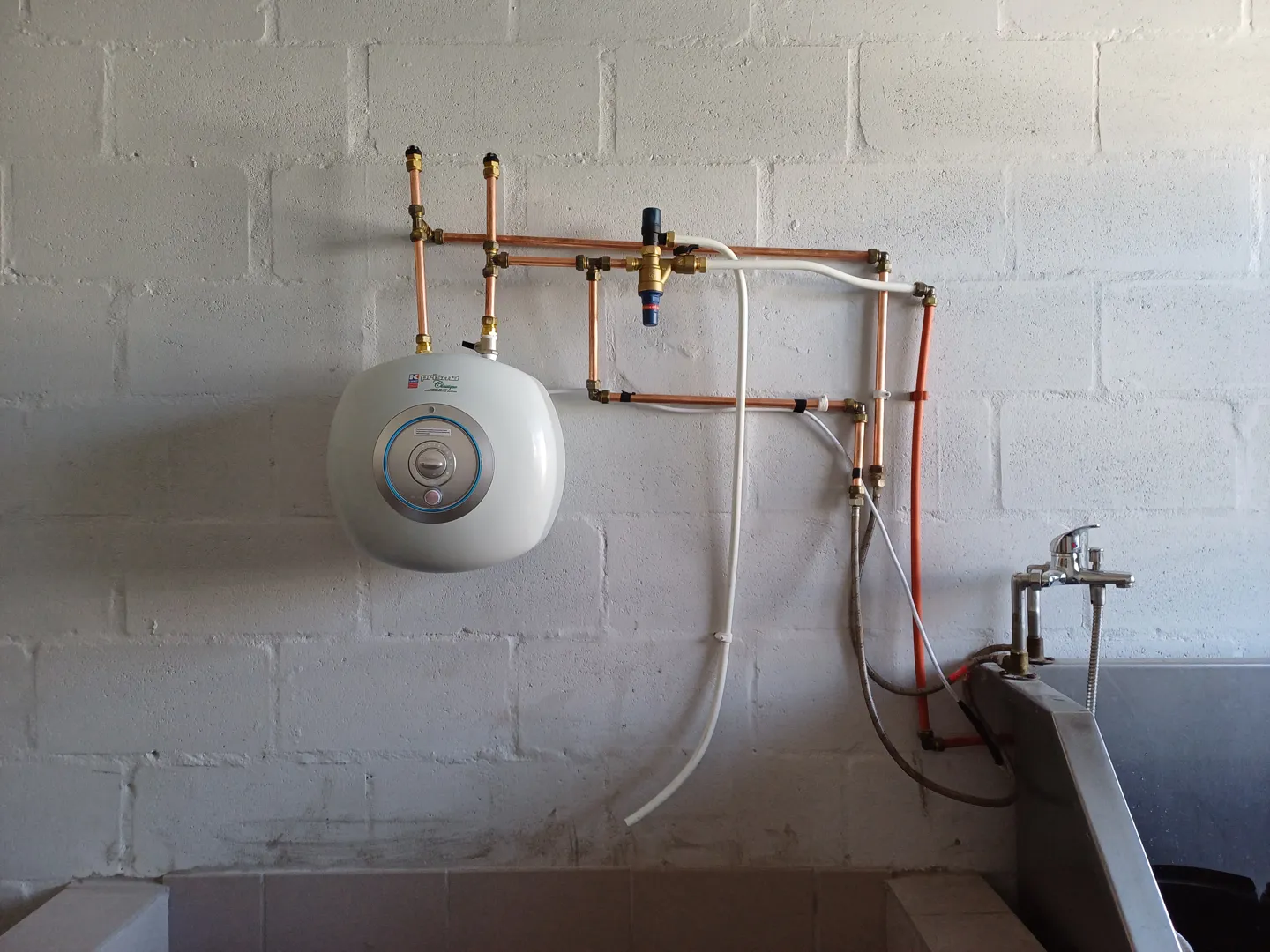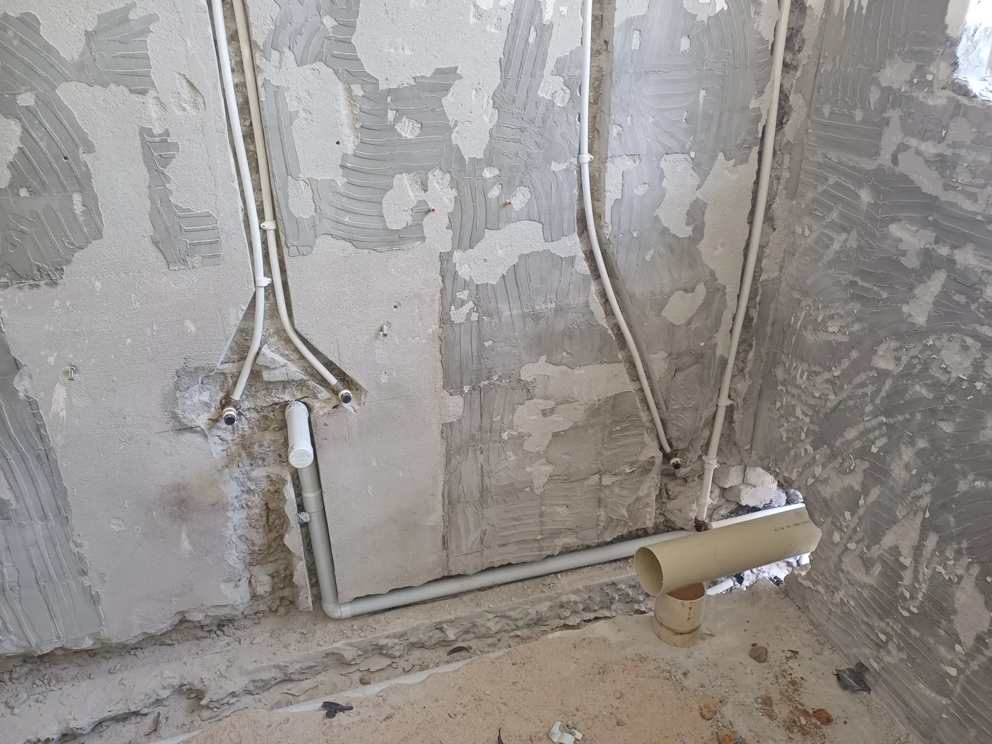 New build piping installation - from municipal water supply to house and from house to conservancy tank Bathroom: shower, toilet and basin Kitchen: sink and washing machine