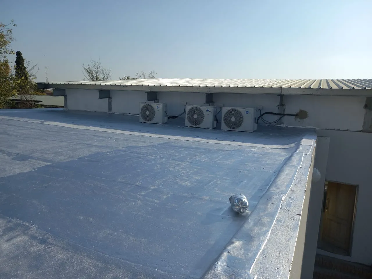 The house has m2 of big six fibre cement roofing. The entire roof needs to be waterproofed again as there are leaks between the joins on the roof and the wall (see photos). The pitch of the roof is shown in the section attached.