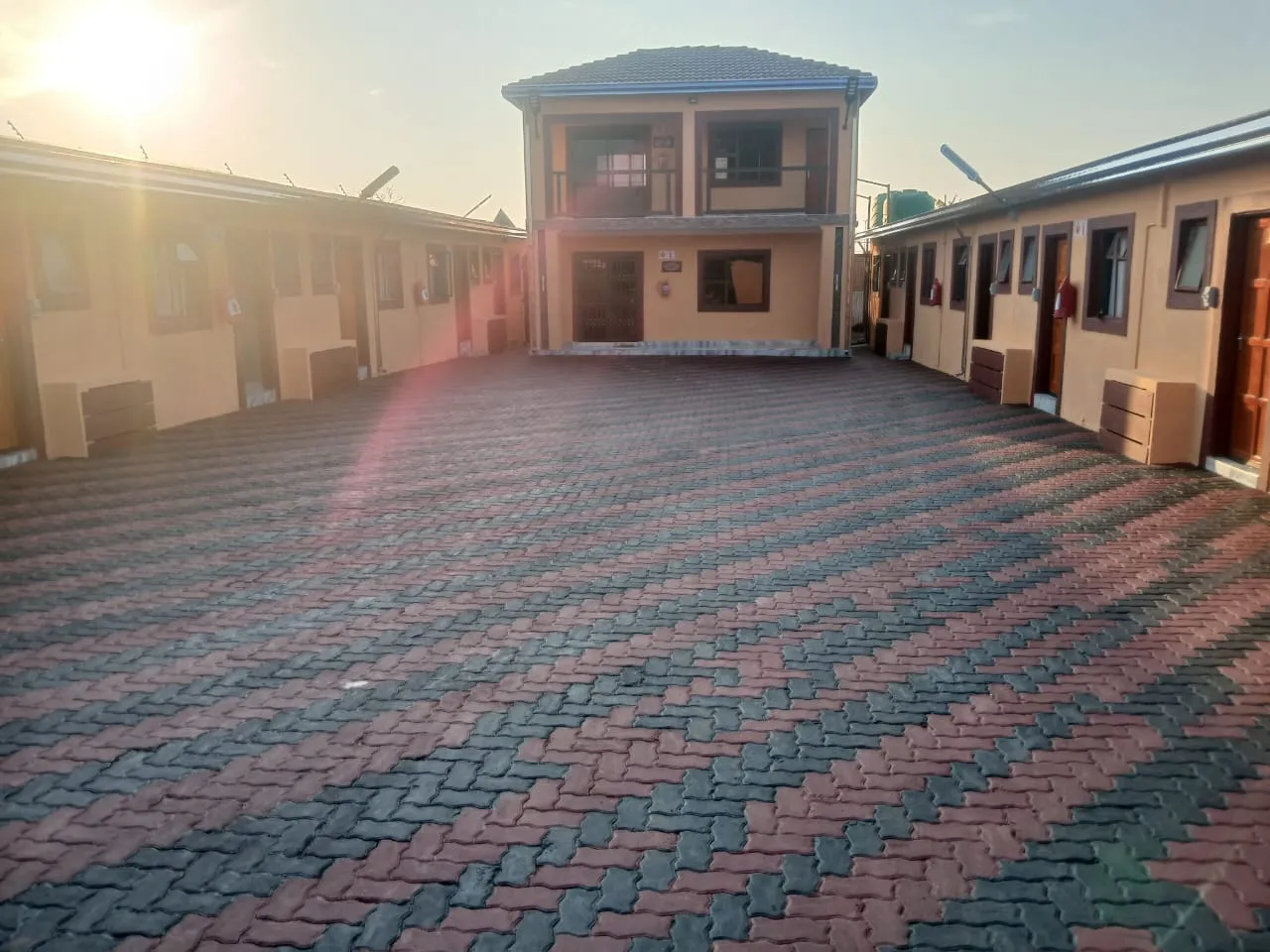 Normal red and grey paving, outside get to driveway