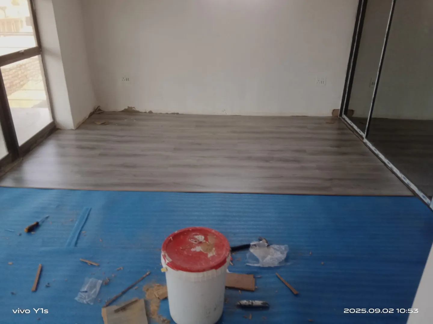 Bedroom with a white wall and ceiling - needs to be touched up with white again