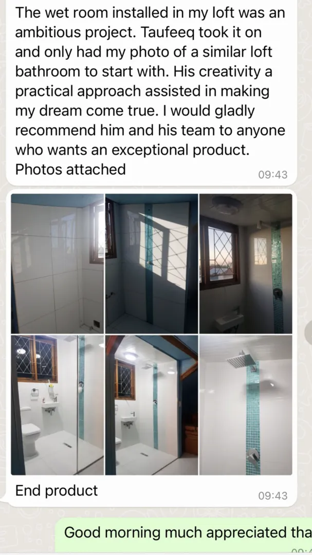 Taufeeq assisted us urgently. amazing service and he helped us after hours (9pm) which was ordinary. We are very happy, his work is very professional