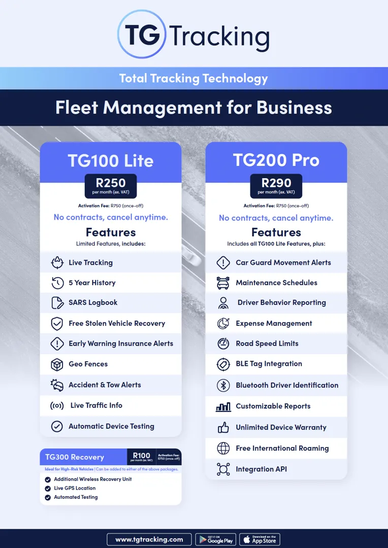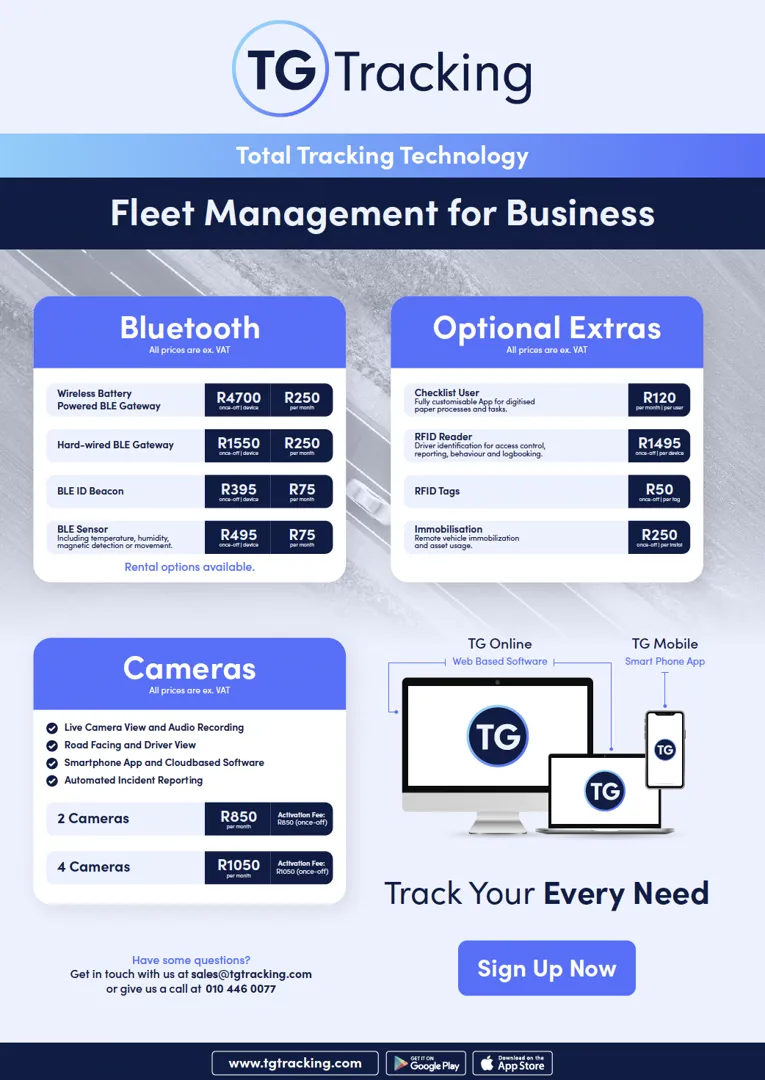 About: Welcome to stress free tracking. You may have just made a smart move. TG Tracking delivers vehicle and asset tracking built for real African conditions from Southern Africa and beyond. No contracts no lock in just locally built hardware and software that works where others fail. From fleets to wireless assets we give you clear visibility real control and local support that has your back. No guessing games no disappearing assets just tracking that does its job properly.