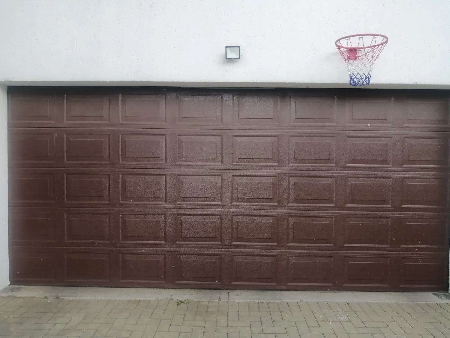 The wooden garage door is broken